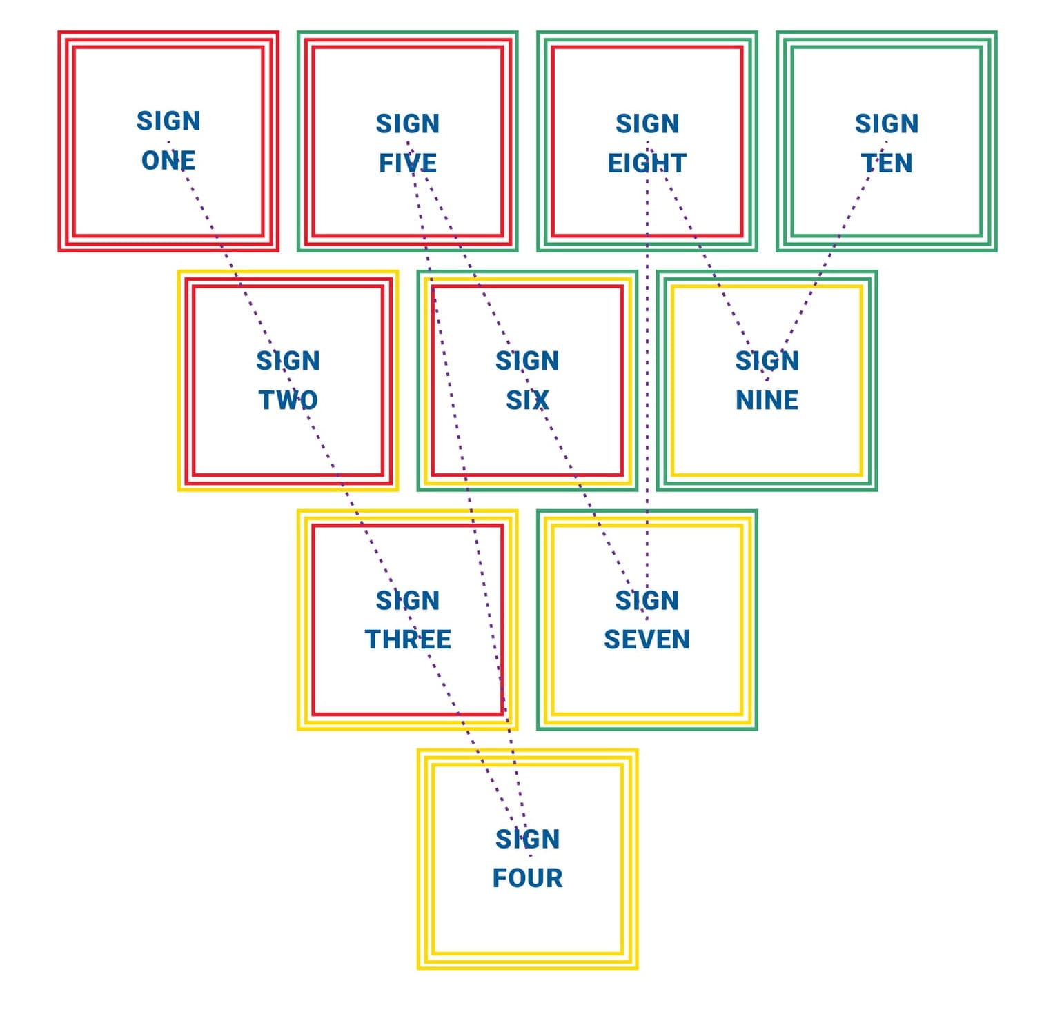 If you flip through books written by Peirce and commentaries by Peircean semioticians you will see diagrams. The most common diagram is the inverted triangle Peirce uses to explain his ten semiotic sign classifications. I will be honest here that I personally do not find the majority of the existing diagrams in the literature useful. Apart from being a creative I am also dyscalculic. I found the existing diagrams were too unfamiliar for designers and illustrators in explaining key components of sign-action and pragmatic thinking. The existing diagrams were very visually dry, ‘mathematic,’ and ‘philosophic’ in nature.